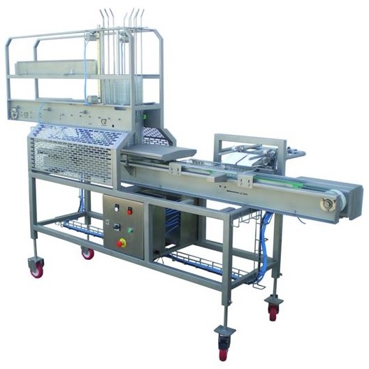 Transportorul hamburger de stivuire, este o masina automata proiectata pentru a alimenta si a incarca in tavi produse din carne.